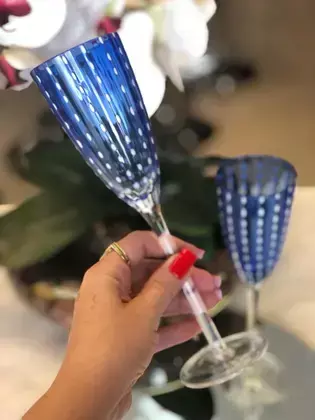 Kit com 2 Taças para Champanhe 200ml – Charme e Sofisticação em Azul com Bolinhas Brancas!